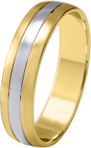 ALIANZA DE BODA DE ORO BICOLOR MATIZADA Y PULIDA TRES PARTES PERFIL CAÑA SUAVE