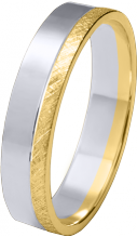 ALIANZA MATRIMONIO ORO BICOLOR PULIDA CON BANDA LATERAL MATIZADA PERFIL PLANO