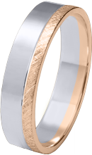 ALIANZA MATRIMONIO ORO BICOLOR PULIDA CON BANDA LATERAL MATIZADA PERFIL PLANO