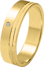ALIANZA MATRIMONIO ORO AMARILLO PULIDA CON BANDA LATERAL MATIZADA PERFIL PLANO