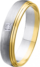 ALIANZA MATRIMONIO ORO BICOLOR MATIZADA CON BORDE BRILLO DOS ESCALONES PERFIL CAÑA SUAVE