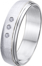 ALIANZA MATRIMONIO ORO BLANCO MATIZADA CON BORDE BRILLO DOS ESCALONES PERFIL CAÑA SUAVE