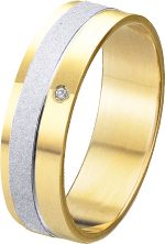 ALIANZA MATRIMONIO ORO BICOLOR PULIDA CON FRANJA MATE PERFIL PLANO A DOS NIVELES