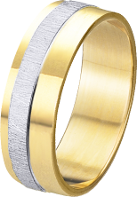 ALIANZA MATRIMONIO ORO BICOLOR PULIDA CON FRANJA MATE PERFIL PLANO A DOS NIVELES