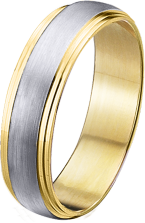 ALIANZA MATRIMONIO ORO BICOLOR MATIZADA CON BORDES DOBLE EN BRILLO PERFIL CAÑA SUAVE