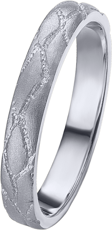 ALIANZA MATRIMONIO ORO BLANCO TEXTURA PIEL SERPIEN MATE PERFIL MEDIA CAÑA DE 3m DE ANCHO Y 1.3m DE GROSOR
