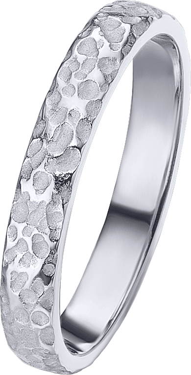 ALIANZA MATRIMONIO ORO BLANCO TEXTURA PICADA SEMIPULIDA PERFIL MEDIA CAÑA DE 3m DE ANCHO Y 1.3m DE GROSOR