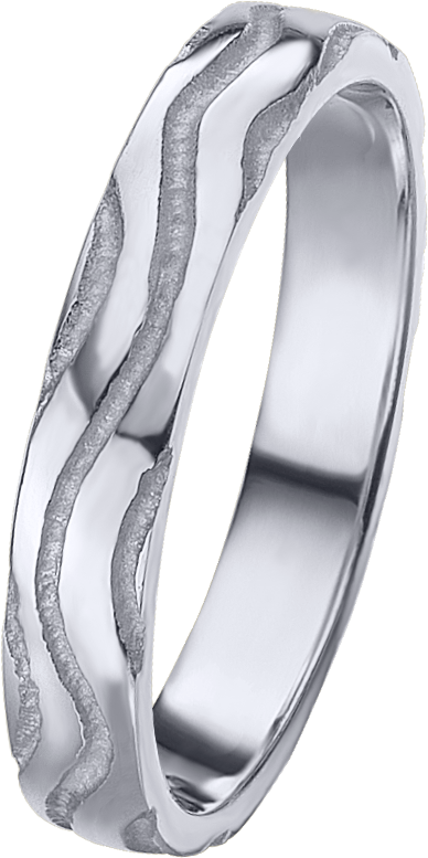 ALIANZA MATRIMONIO ORO BLANCO TEXTURA ONDAS PULIDA PERFIL MEDIA CAÑA DE 3.5m DE ANCHO Y 1.3m GROSOR