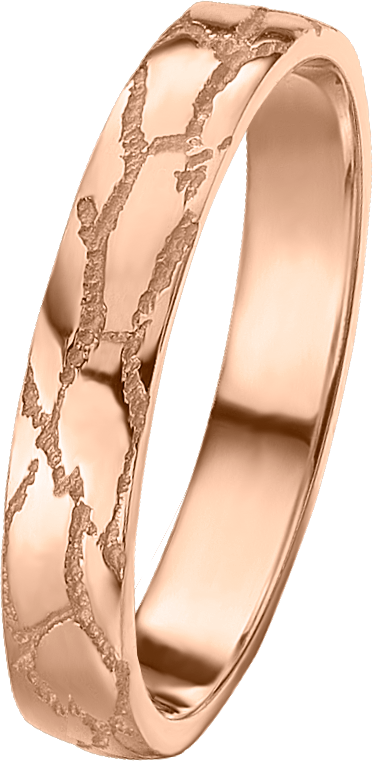 ALIANZA MATRIMONIO ORO ROSA TEXTURA PULIDA PIEL DE SERPIENTE PERFIL MEDIA CAÑA DE 3.5m DE ANCHO Y 1.3m DE GROSOR