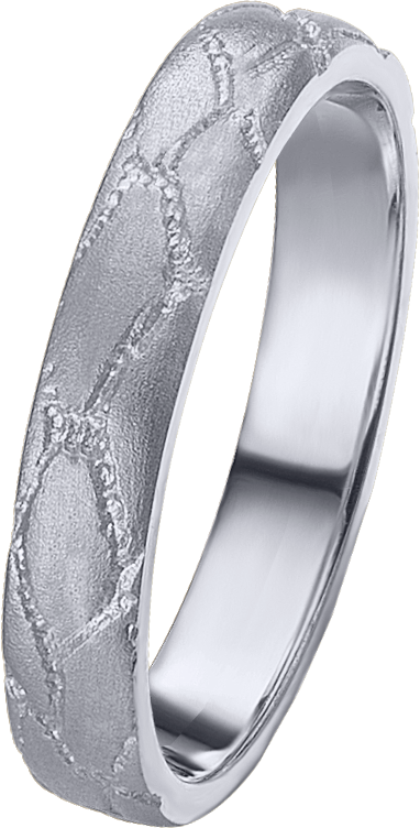 ALIANZA MATRIMONIO ORO BLANCO TEXTURA MATE PIEL DE SERPIENTE PERFIL MEDIA CAÑA DE 3.5m DE ANCHO Y 1.3m DE GROSOR