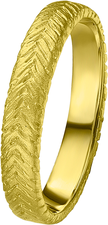 ALIANZA MATRIMONIO ORO AMARILLO TEXTURA ESPIGA MATE PERFIL CAÑA SUAVE DE 3.8m DE ANCHO Y 1.3m GROSOR