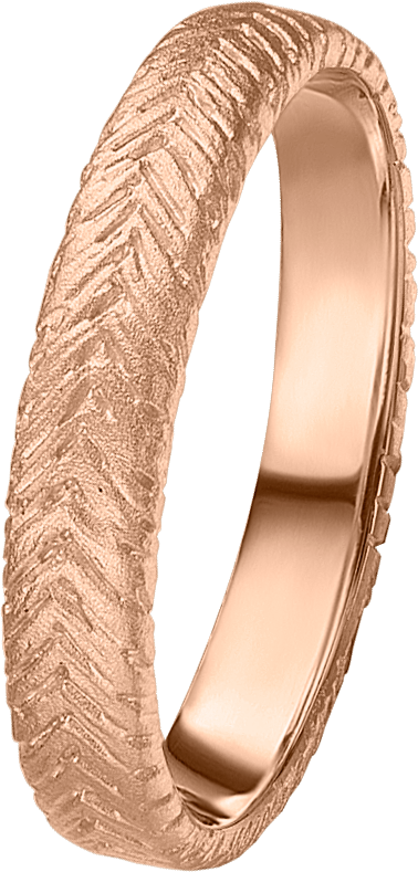 ALIANZA MATRIMONIO ORO ROSA TEXTURA ESPIGA MATE PERFIL CAÑA SUAVE DE 3.8m DE ANCHO Y 1.3m GROSOR