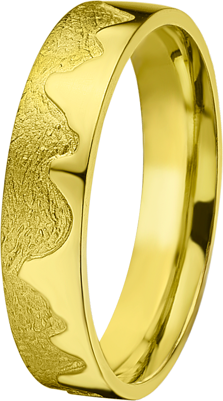 ALIANZA DE BODA ORO AMARILLO COMBINADA LISA Y TEXTURA MONTAÑAS DE 4.70m DE ANCHO Y ACABADO INTERIOR CONFORT GROSOR 1.5m