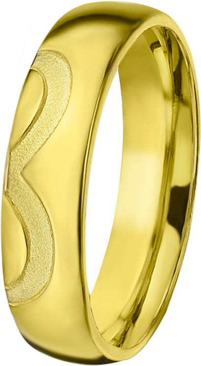 ALIANZA DE BODA ORO AMARILLO LISA CON MEDIO INFINITO MATE DE 4.80m DE ANCHO Y ACABADO INTERIOR GROSOR 1.3m