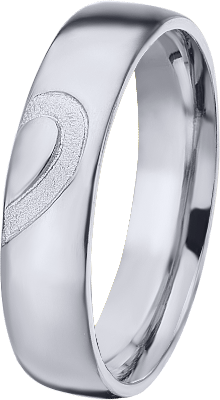 ALIANZA DE BODA ORO BLANCO LISA MEDIO CORAZON DERECHO EN MATE DE 4.80m DE ANCHO Y ACABADO INTERIOR 1.3m