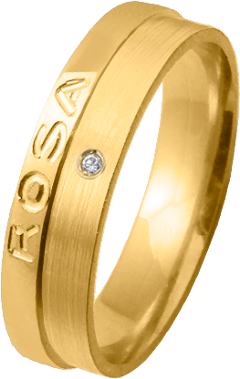 ALIANZA MATRIMONIO ORO AMARILLO PULIDA Y MATIZADA FRANJA LATERAL PERFIL PLANO NOMBRE