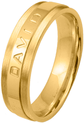 ALIANZA MATRIMONIO ORO AMARILLO PULIDA Y MATIZADA FRANJA CENTRAL PERFIL PLANO CON NOMBRE