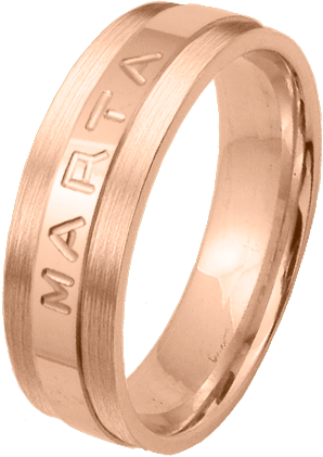 ALIANZA MATRIMONIO ORO ROSA PULIDA Y MATIZADA FRANJA CENTRAL PERFIL PLANO CON NOMBRE