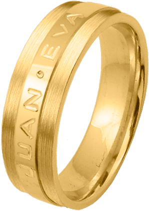 ALIANZA MATRIMONIO ORO AMARILLO PULIDA Y MATIZADA FRANJA CENTRAL PERFIL PLANO CON NOMBRES
