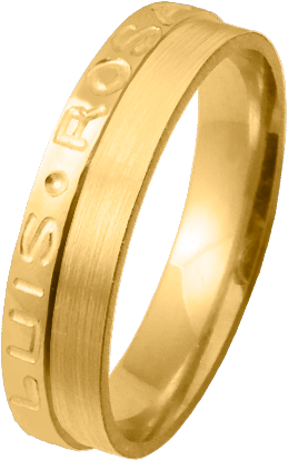 ALIANZA MATRIMONIO ORO AMARILLO PULIDA Y MATIZADA FRANJA LATERAL PERFIL PLANO NOMBRES