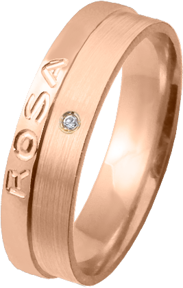 ALIANZA MATRIMONIO ORO ROSA PULIDA Y MATIZADA FRANJA LATERAL PERFIL PLANO NOMBRE