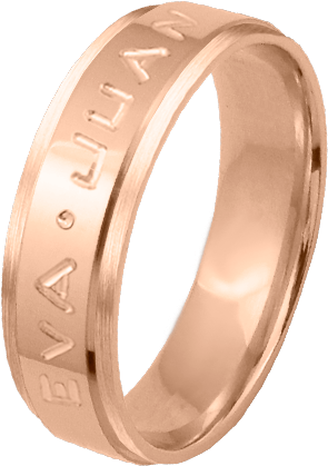 ALIANZA MATRIMONIO ORO ROSA PULIDA Y MATIZADA FRANJA ANCHA CENTRAL PERFIL PLANO NOMBRES