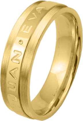 ALIANZA MATRIMONIO ORO AMARILLO PULIDA Y MATIZADA FRANJA CENTRAL PERFIL PLANO CON NOMBRES