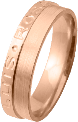 ALIANZA MATRIMONIO ORO ROSA PULIDA Y MATIZADA FRANJA LATERAL PERFIL PLANO NOMBRES