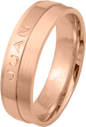 ALIANZA MATRIMONIO ORO ROSA PULIDA Y MATIZADA FRANJA LATERAL PERFIL PLANO CON NOMBRE