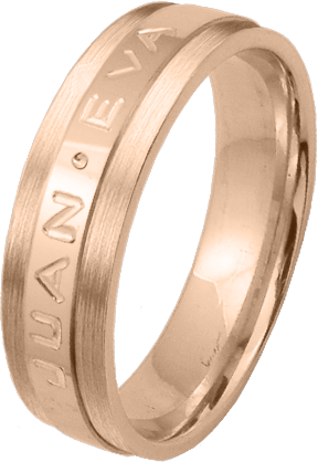 ALIANZA MATRIMONIO ORO ROSA PULIDA Y MATIZADA FRANJA CENTRAL PERFIL PLANO CON NOMBRES