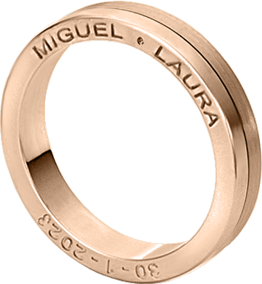 ALIANZA MATRIMONIO ORO ROSA PULIDA Y MATIZADA CON GRABACION NOMBRES EN LATERAL ANILLO