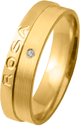 ALIANZA MATRIMONIO ORO AMARILLO PULIDA Y MATIZADA FRANJA LATERAL PERFIL PLANO NOMBRE