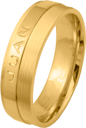ALIANZA MATRIMONIO ORO AMARILLA PULIDA Y MATIZADA FRANJA LATERAL PERFIL PLANO CON NOMBRE