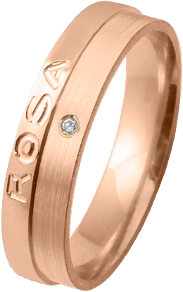 ALIANZA MATRIMONIO ORO ROSA PULIDA Y MATIZADA FRANJA LATERAL PERFIL PLANO NOMBRE