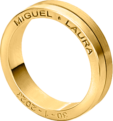 ALIANZA MATRIMONIO ORO AMARILLO PULIDA Y MATIZADA CON GRABACION NOMBRES EN LATERAL ANILLO
