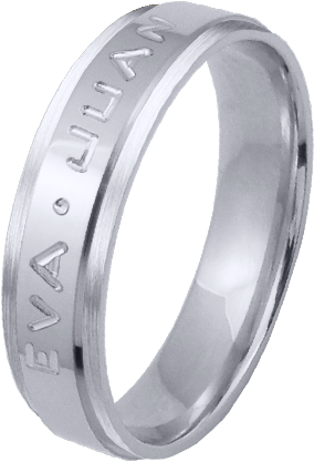 ALIANZA MATRIMONIO ORO BLANCO PULIDA Y MATIZADA FRANJA ANCHA CENTRAL PERFIL PLANO NOMBRES