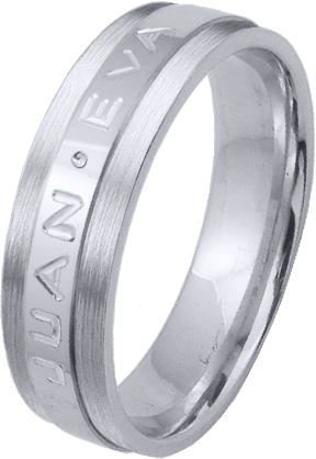 ALIANZA MATRIMONIO ORO BLANCO PULIDA Y MATIZADA FRANJA CENTRAL PERFIL PLANO CON NOMBRES