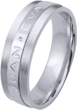 ALIANZA MATRIMONIO ORO BLANCO PULIDA Y MATIZADA FRANJA CENTRAL PERFIL PLANO CON NOMBRES