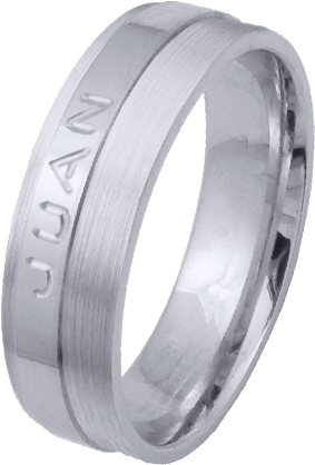 ALIANZA MATRIMONIO ORO BLANCO PULIDA Y MATIZADA FRANJA LATERAL PERFIL PLANO CON NOMBRE