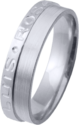 ALIANZA MATRIMONIO ORO BLANCO PULIDA Y MATIZADA FRANJA LATERAL PERFIL PLANO NOMBRES