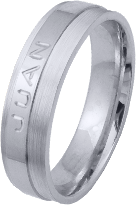 ALIANZA MATRIMONIO ORO BLANCO PULIDA Y MATIZADA FRANJA LATERAL PERFIL PLANO CON NOMBRE