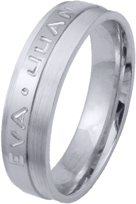 ALIANZA MATRIMONIO ORO BLANCO PULIDA Y MATIZADA FRANJA LATERAL PERFIL PLANO CON NOMBRES