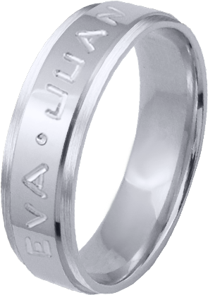 ALIANZA MATRIMONIO ORO BLANCO PULIDA Y MATIZADA FRANJA ANCHA CENTRAL PERFIL PLANO NOMBRES