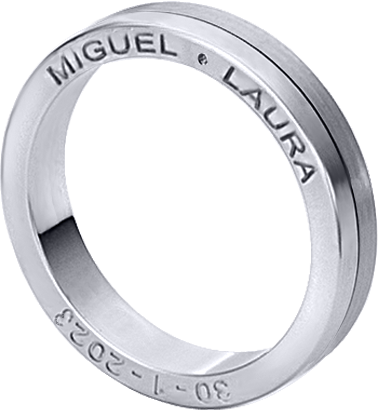 ALIANZA MATRIMONIO ORO BLANCO PULIDA Y MATIZADA CON GRABACION NOMBRES EN LATERAL ANILLO
