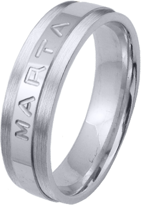 ALIANZA MATRIMONIO ORO BLANCO PULIDA Y MATIZADA FRANJA CENTRAL PERFIL PLANO CON NOMBRE