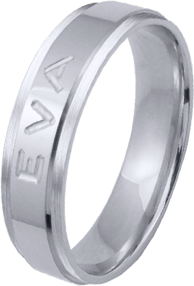 ALIANZA MATRIMONIO ORO BLANCO PULIDA Y MATIZADA FRANJA ANCHA CENTRAL PERFIL PLANO NOMBRE