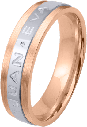 ALIANZA MATRIMONIO ORO BICOLOR PULIDA Y MATIZADA FRANJA CENTRAL PERFIL PLANO CON NOMBRES