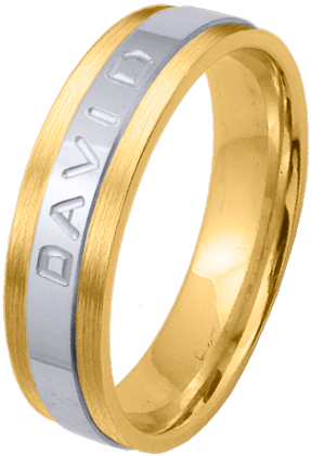 ALIANZA MATRIMONIO ORO BICOLOR PULIDA Y MATIZADA FRANJA CENTRAL PERFIL PLANO CON NOMBRE