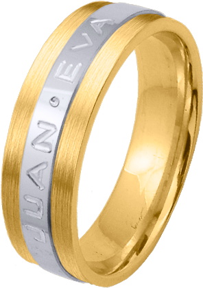 ALIANZA MATRIMONIO ORO BICOLOR PULIDA Y MATIZADA FRANJA CENTRAL PERFIL PLANO CON NOMBRES