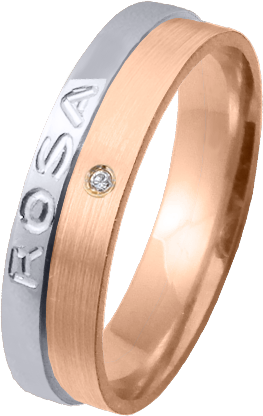 ALIANZA MATRIMONIO ORO BICOLOR PULIDA Y MATIZADA FRANJA LATERAL PERFIL PLANO NOMBRE